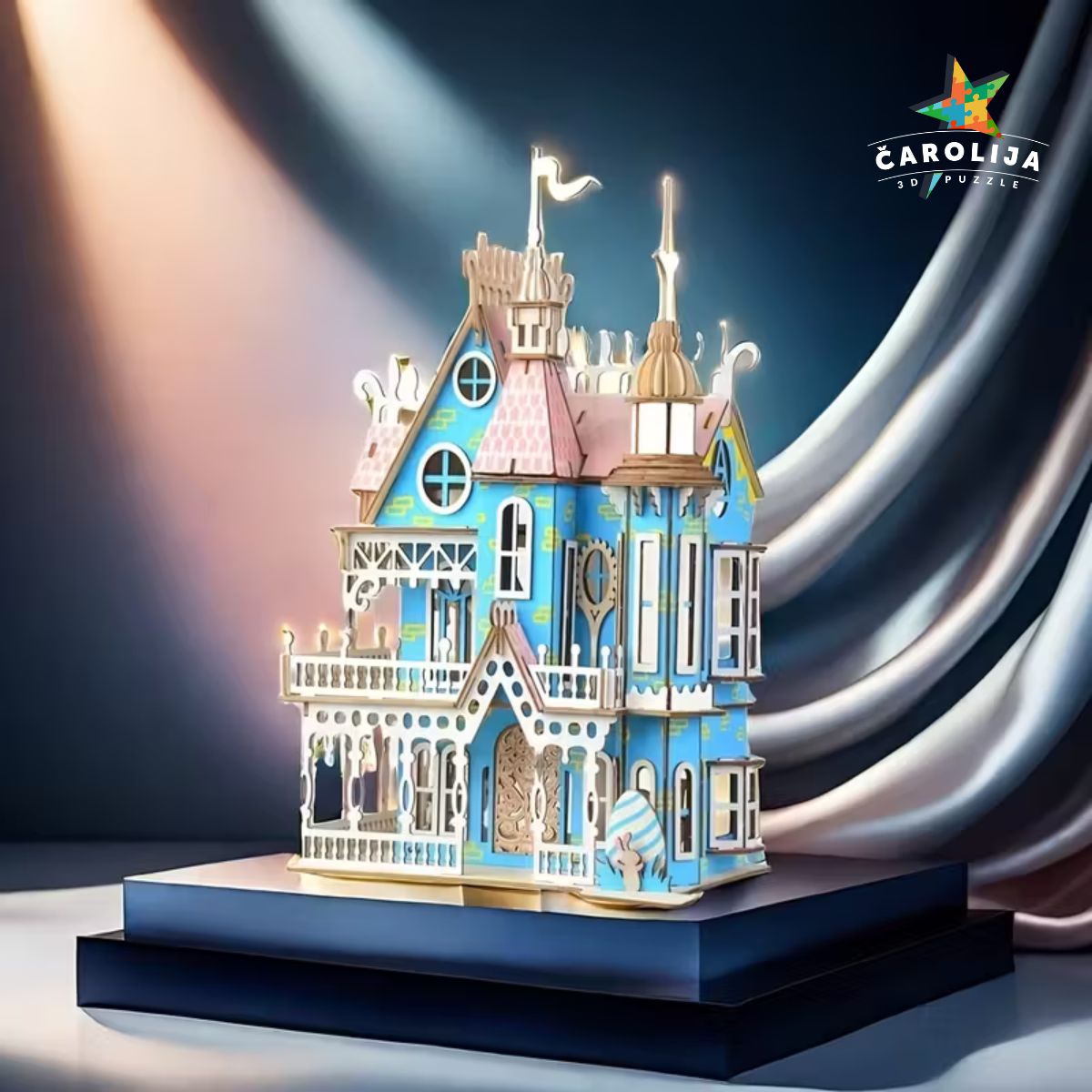 Plava Vila Fantazija donosi delikatnu kombinaciju pastelno plave, roze i zlatne boje, stvarajući atmosferu kao iz priče.